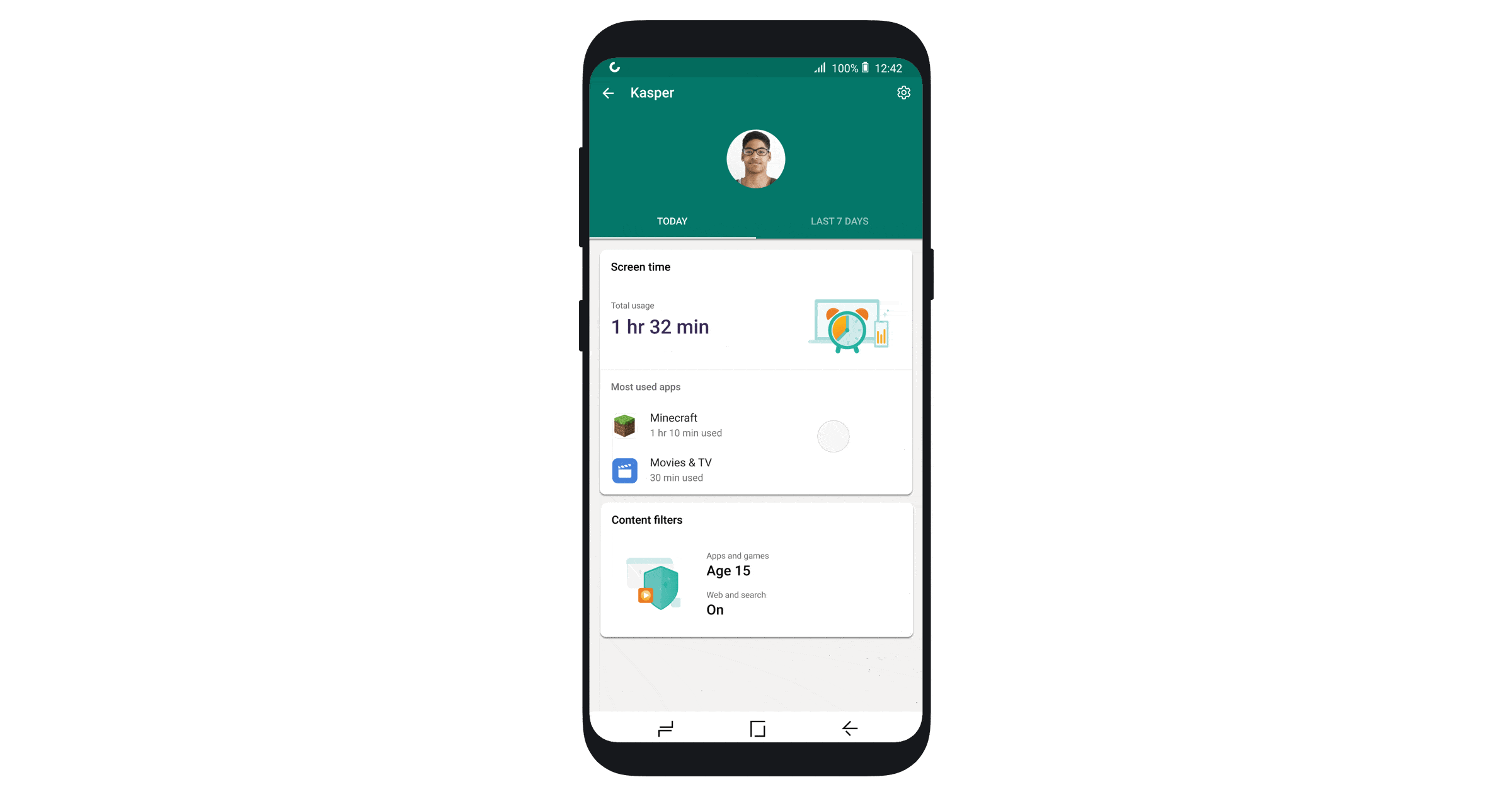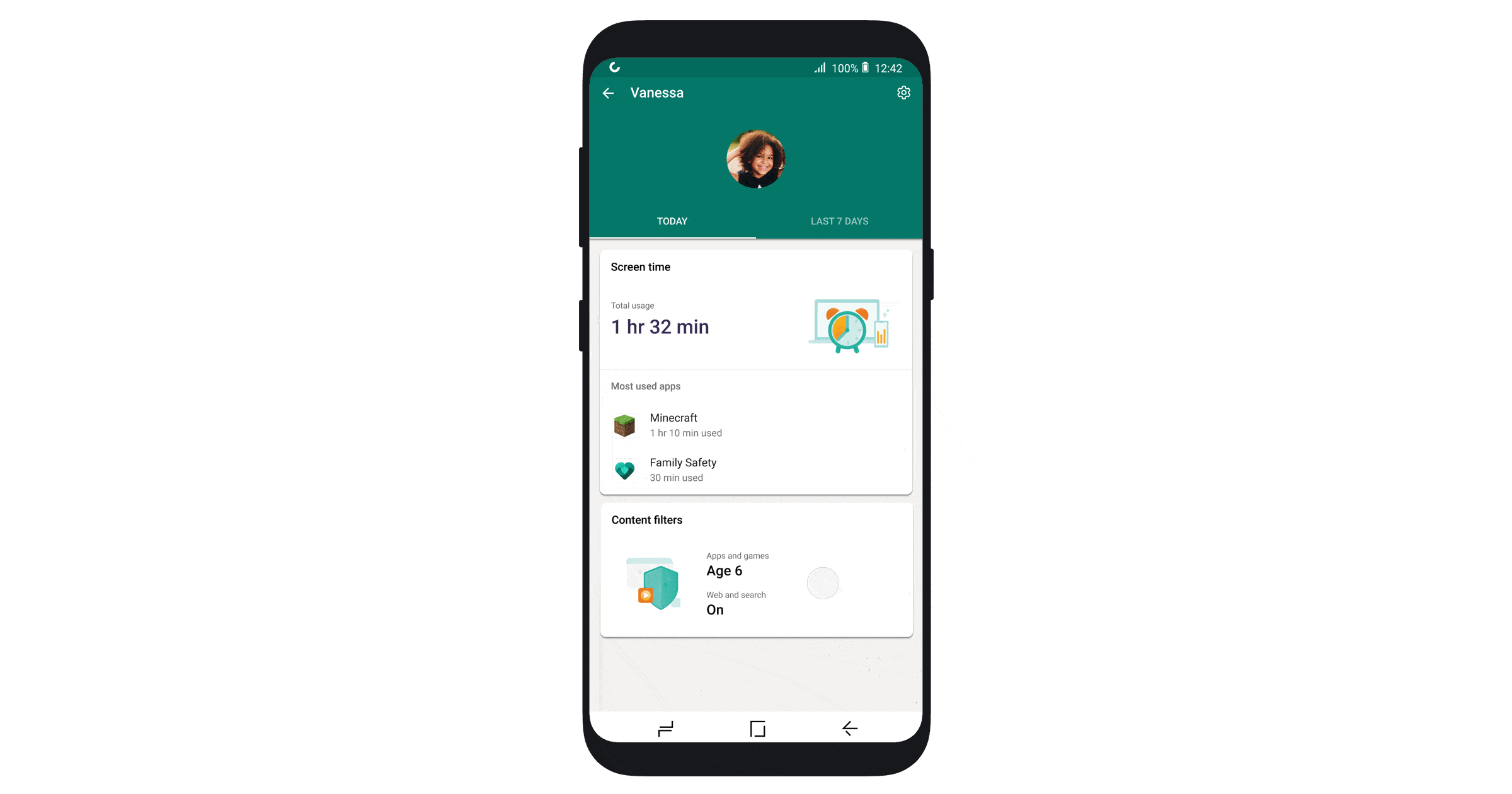 With the Family Security every week, parents and kids receive an email with highlights of the child’s digital activity. The report will show a variety of information such as Screen Time, time spent in apps, and websites visited.